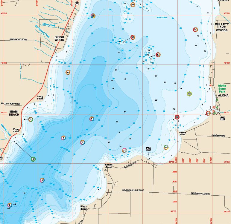 Mullett and Burt Lakes, Michigan Waterproof Map (Fishing Hot Spots)