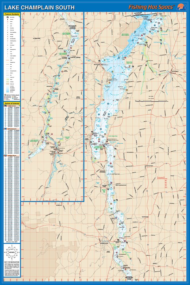 Lake Champlain (South Section), New York/Vermont Waterproof Map (Fishing Hot Spots)