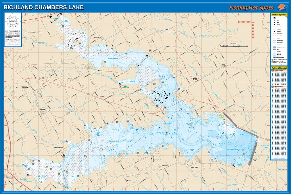 Richland Chambers Lake, Texas Waterproof Map (Fishing Hot Spots)