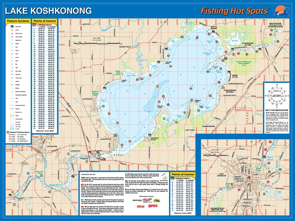 Lake Koshkonong, Wisconsin Waterproof Map (Fishing Hot Spots)